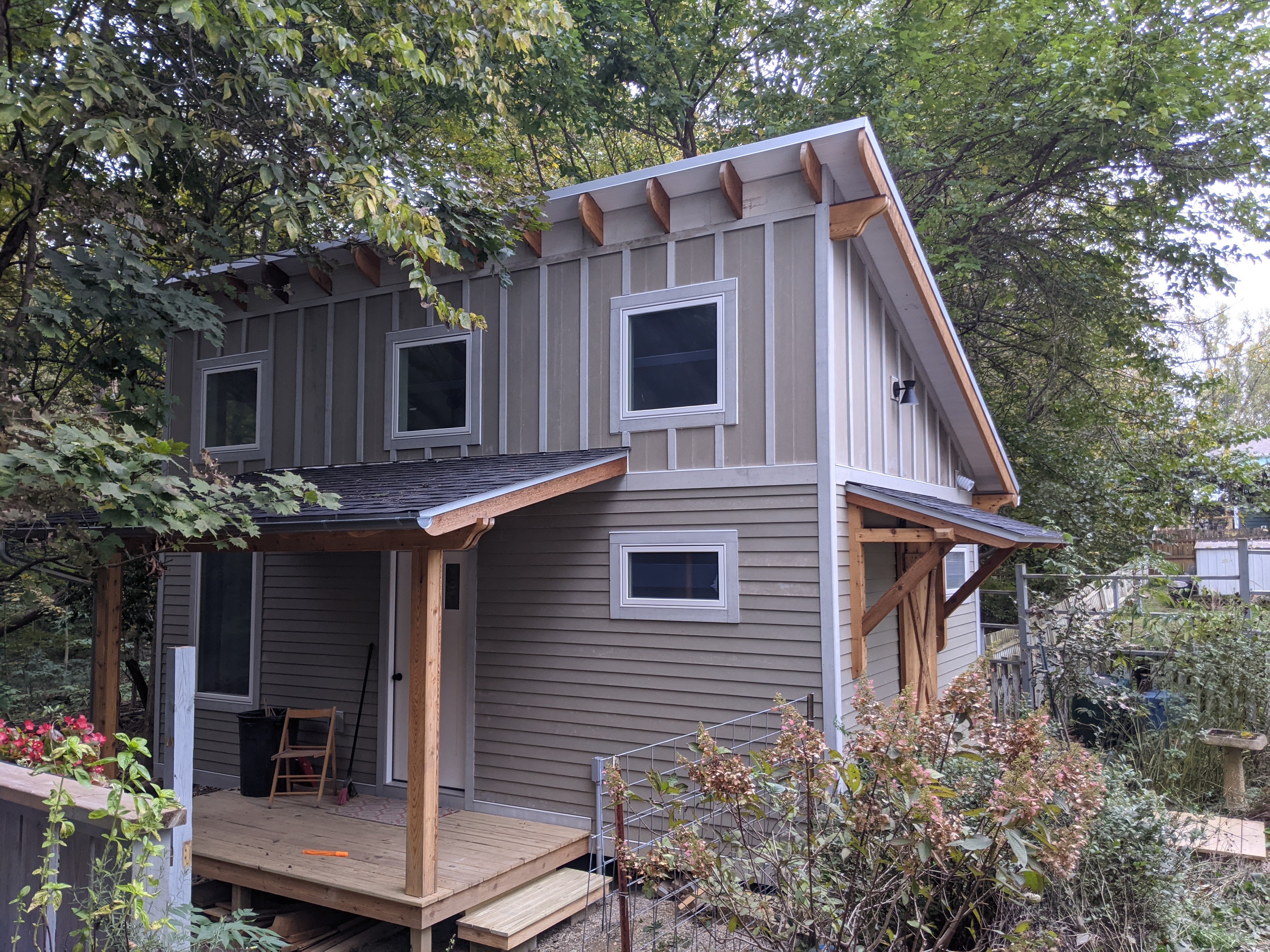 About the space: The Anchorhold is a 350 square foot tiny home nestled in a neighborhood in south central Bloomington, Indiana. To the east it faces a nature preserve, where you can watch deer, squirrels, and woodpeckers. Its western border is an enclosed garden. It is designed to be a quiet place, a refuge.